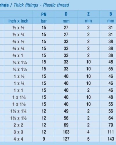 PHỤ TÙNG PVC-U CHUYỂN HỆ INCH - MÉT
